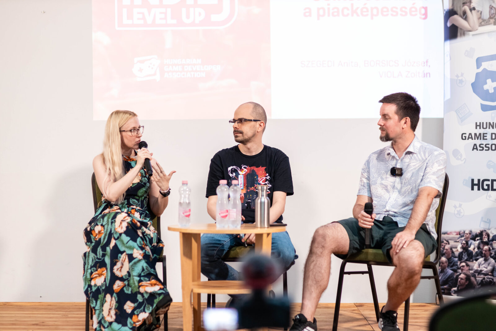 Célunk az volt, hogy körbejárjuk a témát, hogy hogyan lehet indie-ként, nagyon olcsón vagy akár ingyen is letesztelni a játékötletünket, megpróbálni belőni a célcsoportunkat, és tesztelni hipotéziseinket. Ehhez az ipar veteránjait hívtuk meg: velünk volt Viola Zoltán, aki a Maximum Entertainment magyarországi stúdióvezetője, jelenleg F2P konzol sportjáték fejlesztését vezeti. A másik beszélgetőpartner pedig Borsics József volt, aki 10 éve mobiljátékfejlesztésben dolgozik, jelenleg az Outplay-nél vezető designer. A beszélgetést Szegedi Anita, senior producer és a HGDA egyik alelnöke vezette.